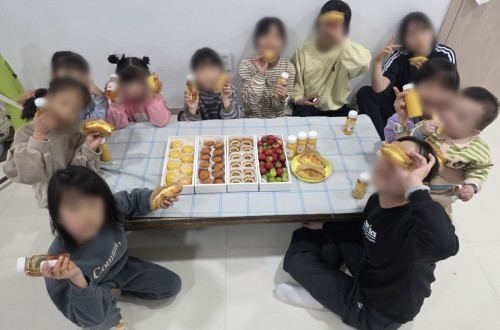 세트릭아이에서 성우 아이들을 위해 빵과 쿠기, 음료를 …